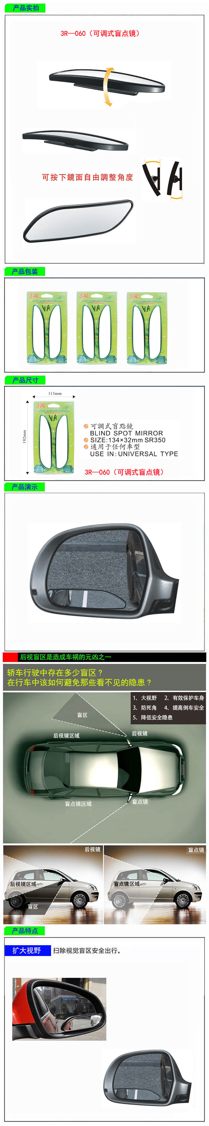 • 型號:   3R—060(可調式盲點鏡)