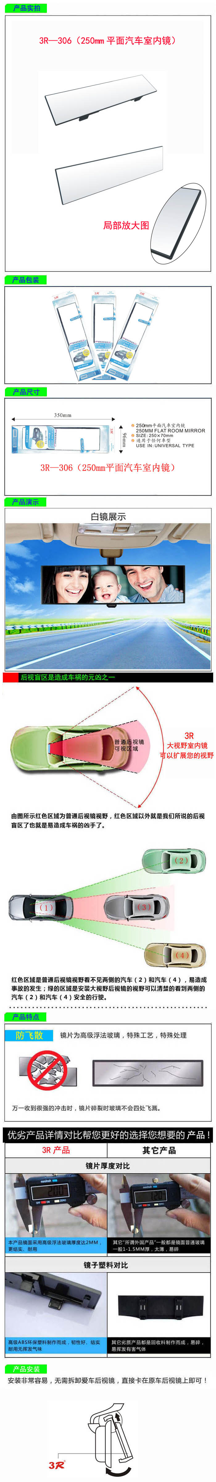 • 型號:   3R—306(250mm平面汽車室內鏡)