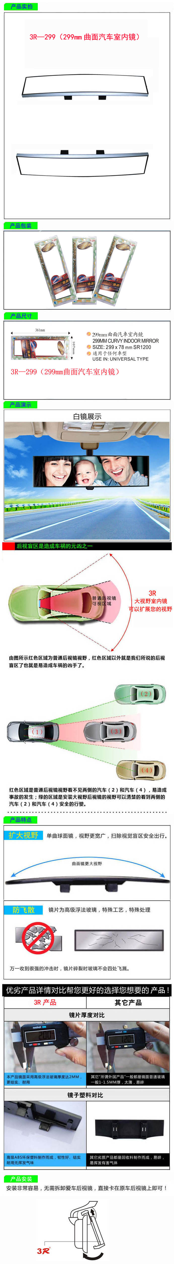 • 型號:   3R—299(299mm曲面汽車室內(nèi)鏡)