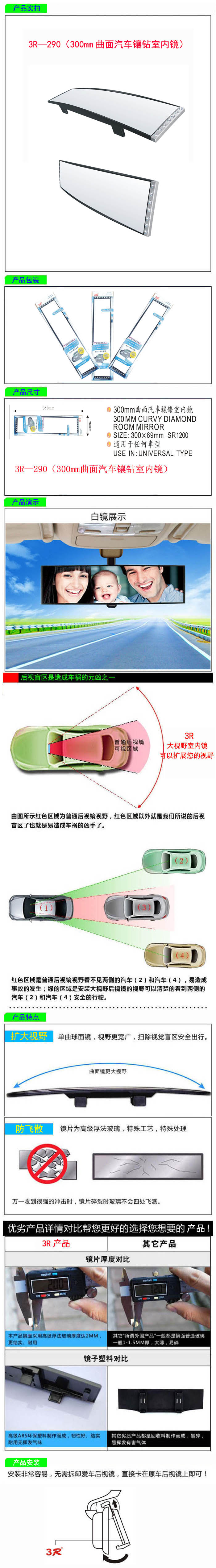 • 型號:   3R—290(300mm曲面汽車鑲鉆室內(nèi)鏡)