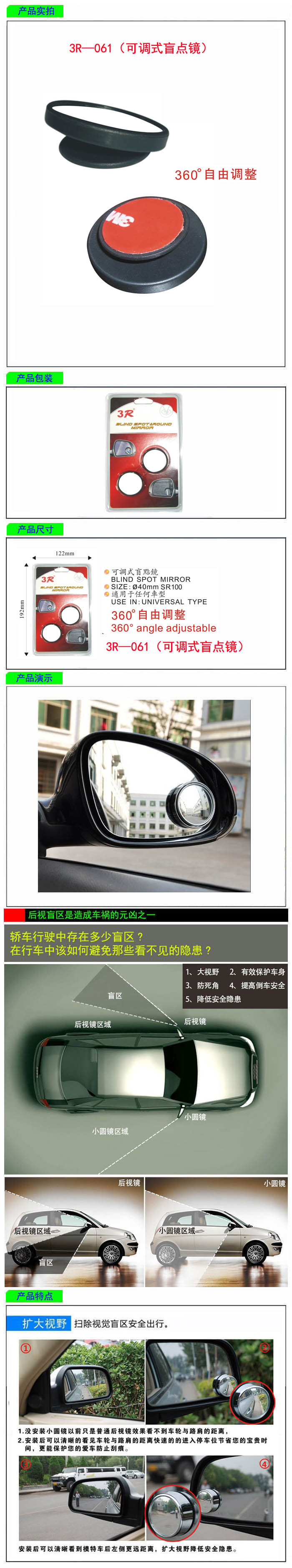 • 型號:   3R—061(可調式盲點鏡)